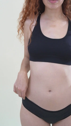 Porque sabemos que tu ciclo no siempre es igual, pero tu comodidad sí. Nuestra braga bikini está lista para todo: flujo ligero, días impredecibles y esa sensación de libertad que te encanta. Llévala, olvídate de estar incomoda.