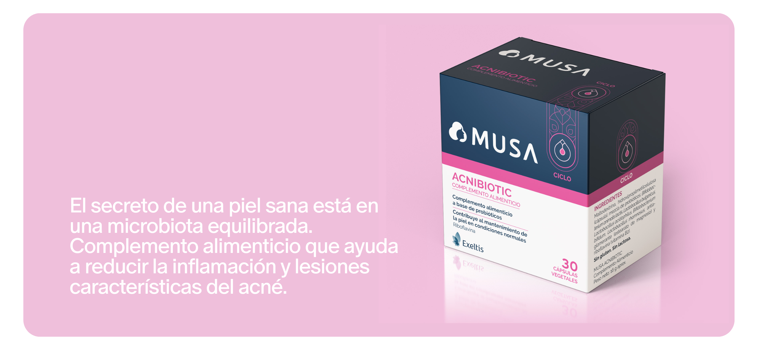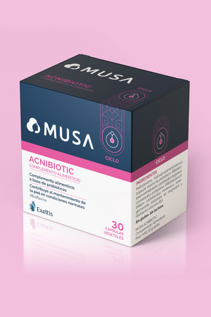 Un desequilibrio en la microbiota intestinal puede influir negativamente en la microbiota cutánea, favoreciendo el desarrollo del acné. MUSA ACNIBIOTIC es un complemento alimenticio diseñado para abordar esta conexión, promoviendo una piel más saludable desde el interior.