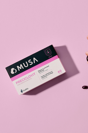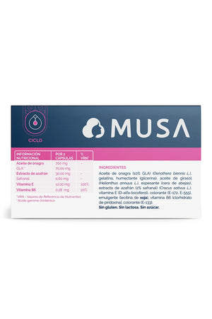 MUSA EQUILIBRIO HORMONAL es el complemento que acompaña y apoya tu bienestar en cada fase del ciclo. Formulado con aceite de onagra y azafrán.